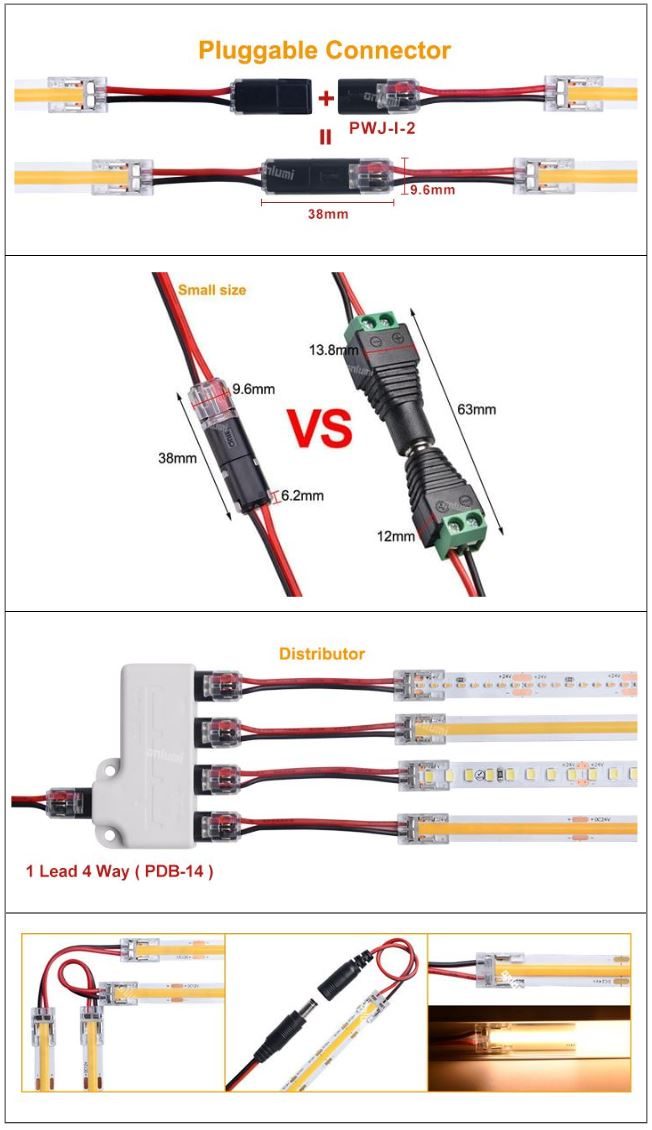 Our new, easy to use, pluggable LED Strip Connectors, help to save both the time and hassle of connecting a strip light. This solder free