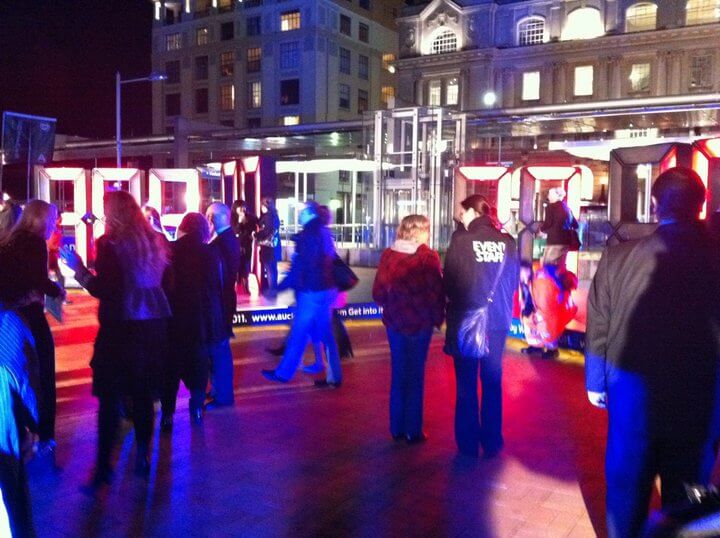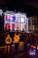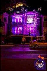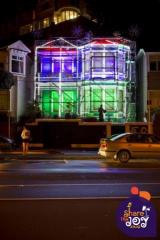 Cadbury "Share the Joy" Christmas lighting display Wellington 2010. In two days we covered a house in several hundred metres of rope light, large LED fireworks on the roof, dozens of LED icicle light kits and 50 lineal wash flood lights. All programmed with a customer DMX controller and external microphone that triggered the shows. The louder the people clapped the more of the house lit up, until the final show was triggered.