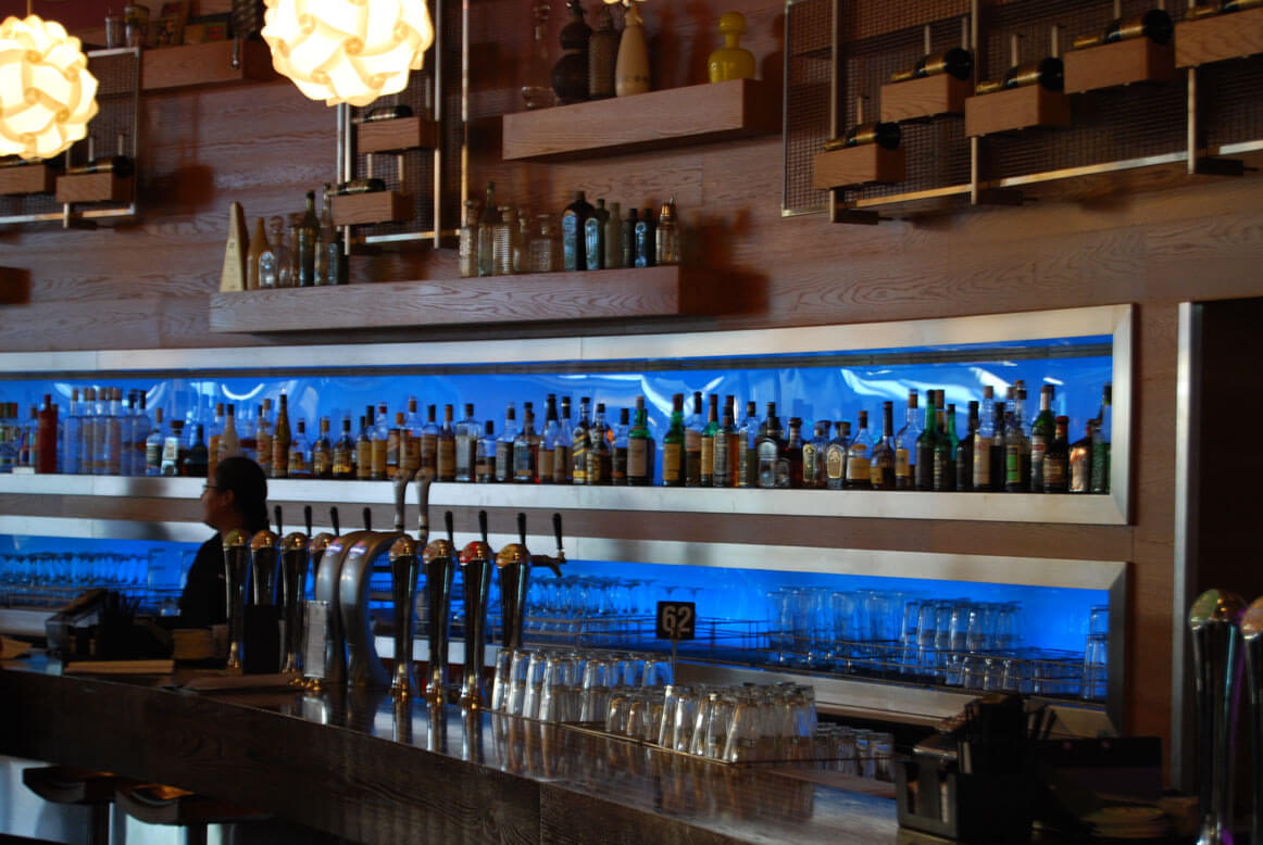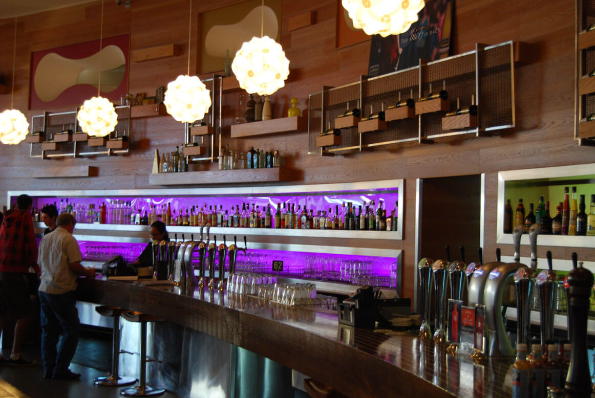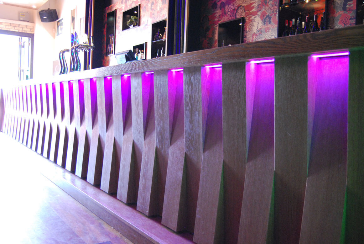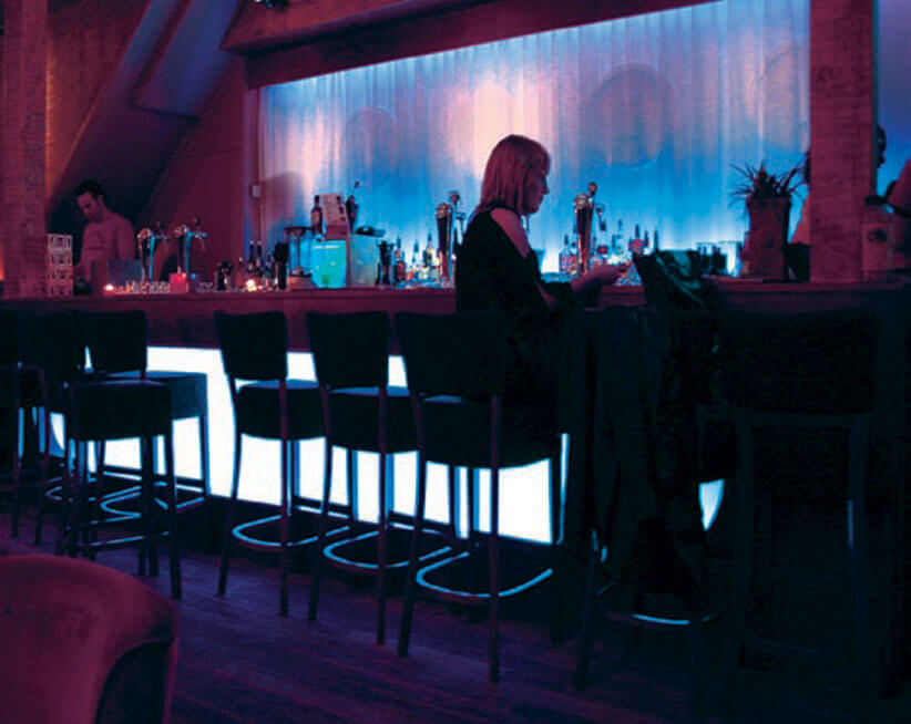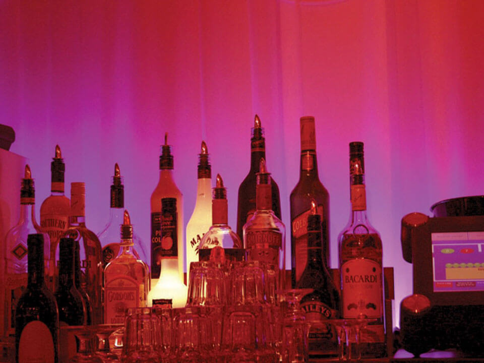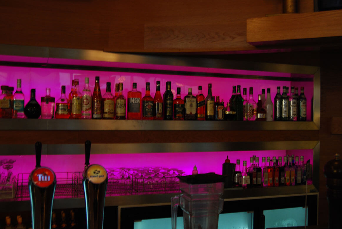 LED lighting can create stunning effects in bars and night clubs. Colour changing LED strips can illuminate spirit and bottle racks, or under counters and bar tops, while larger fixtures can be used for feature lighting.