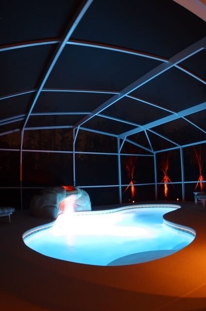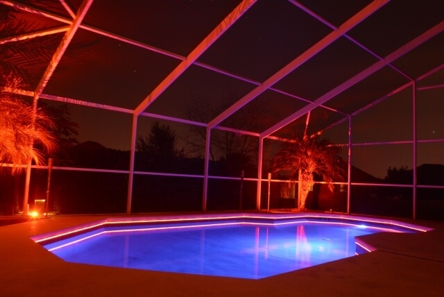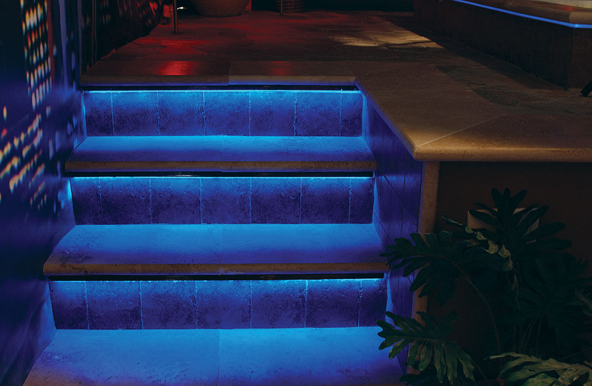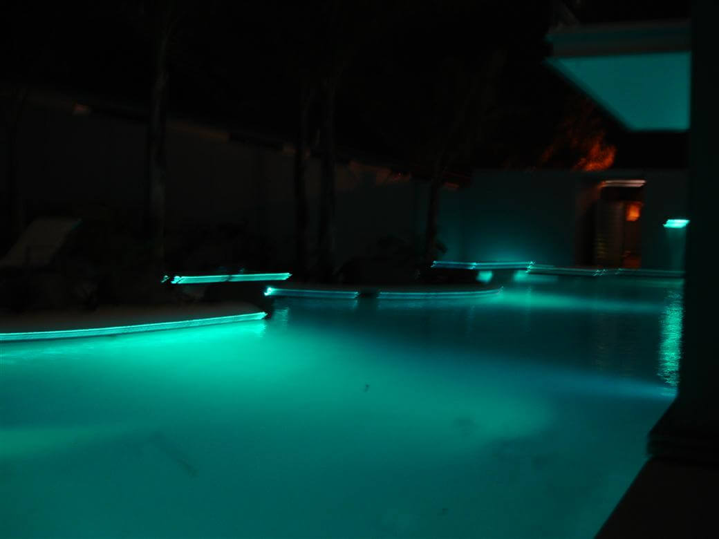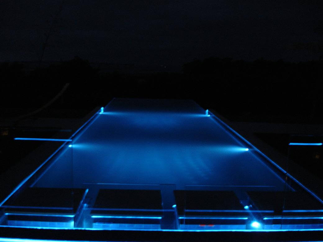 LEDs provide a unique visual enhancement to swimming pools. Underwater lights spread rich vibrant colours throughout the pools water and surrounding environment, while LED Neon Flex can be used for perimeter lighting.