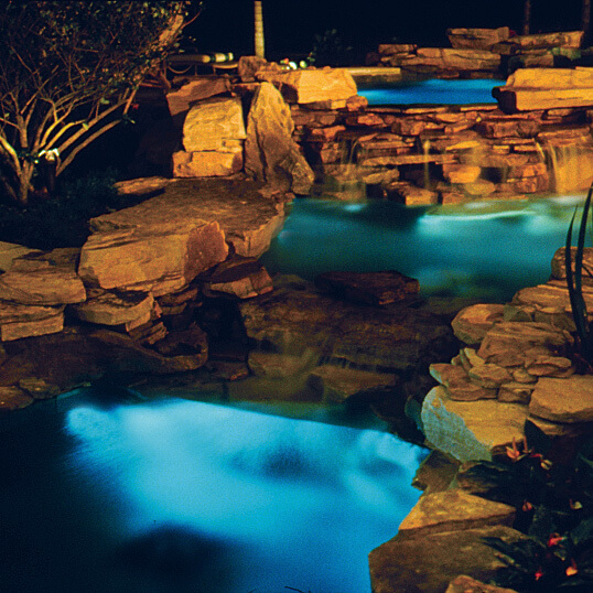 We can help design your new water feature from scratch, including jets, filtration and lighting or simply help you bring your existing water feature, fountain or pond to life with the additional of colour changing or single colour under water LED lights - from small home fountains to large commercial projects.