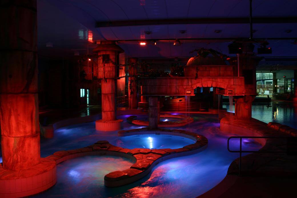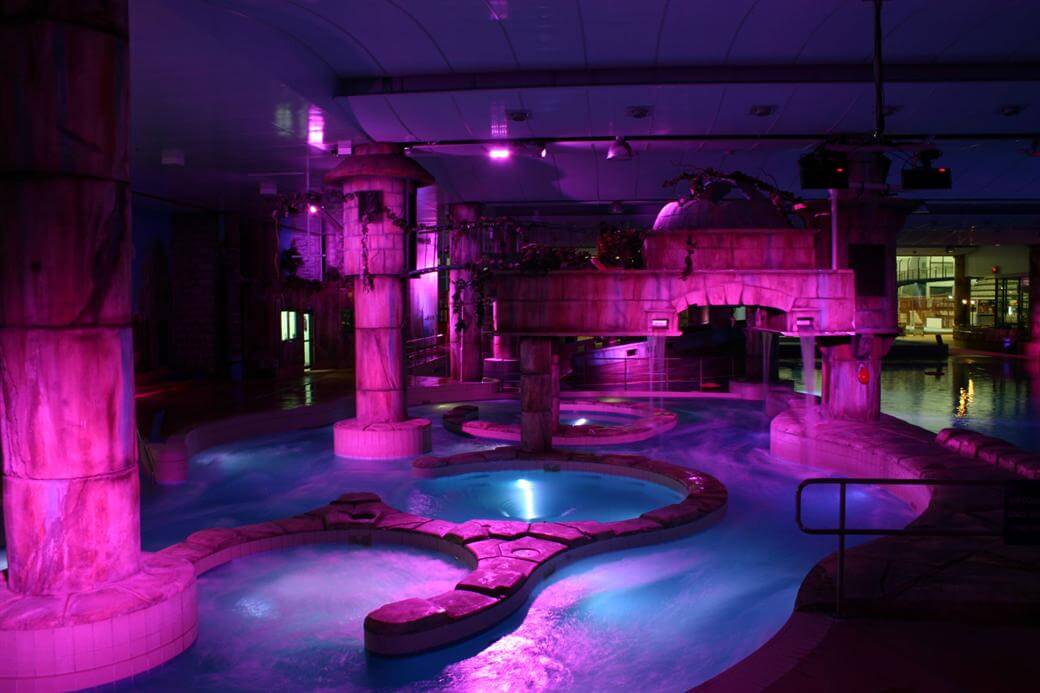 70 high powered under water LEDs and 80 RGB flood lights controlled via a DMX system were used in the QEII Swimming Pool lighting upgrade in Christchurch. the result was a significant reduction in energy costs and stunning colour effects