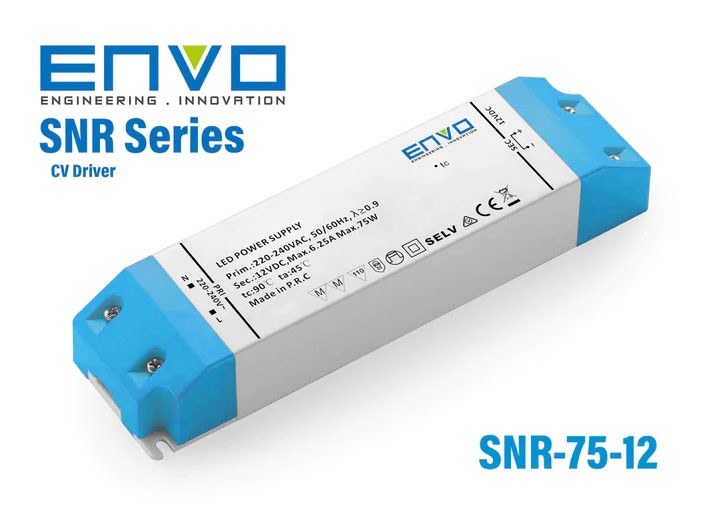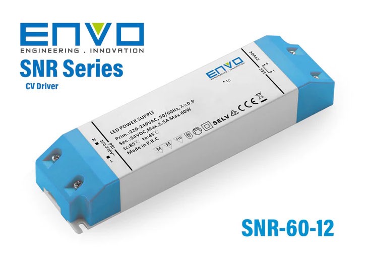 EV-SNR series is an indoor constant voltage power supply. Its input voltage range is 198-264Vac, with the high efficiency up to 90%,
