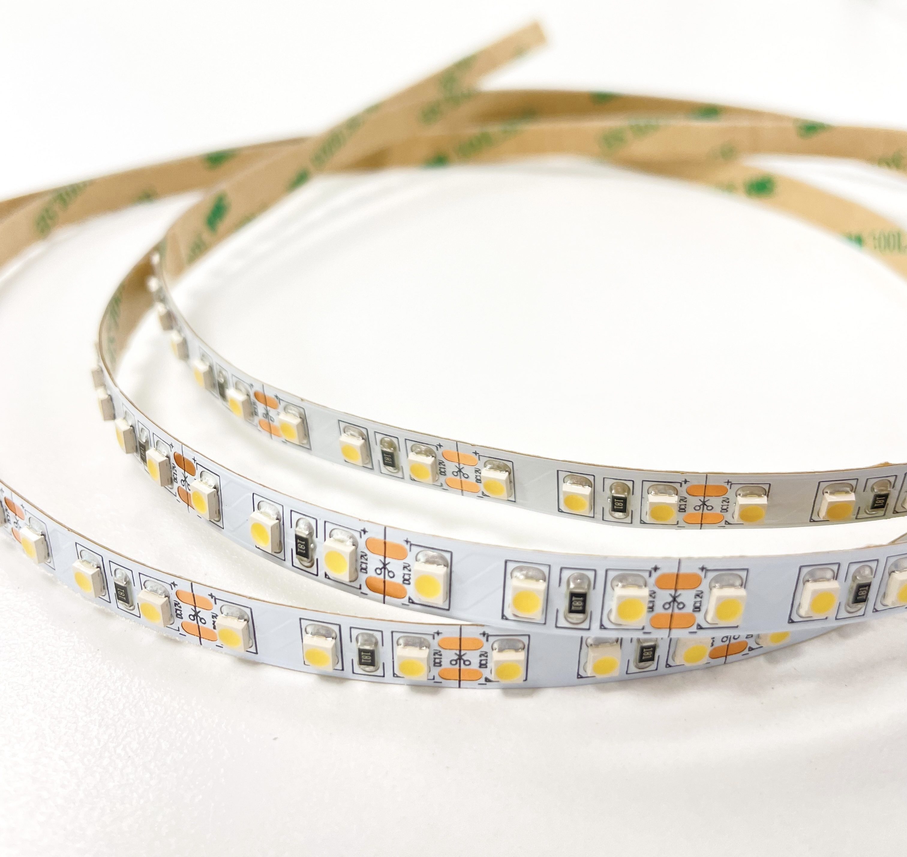 Low Voltage 12V DC 120 3528 LEDs per metre Strip Width 8mm 9.6 watts per metre Cut every 25mm 3m adhesive backing 2 year warranty