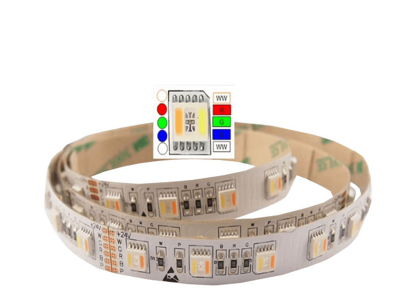 The iFlex Full Spectrum WRGBW LED strip light uses a unique 5:1 LED chip with separate Warm White and Cool White diodes, along with colour mixing RGB. Match with an appropriate controller, the strip can produce up to 16 million colour combinations, as well as Warm and Cool White