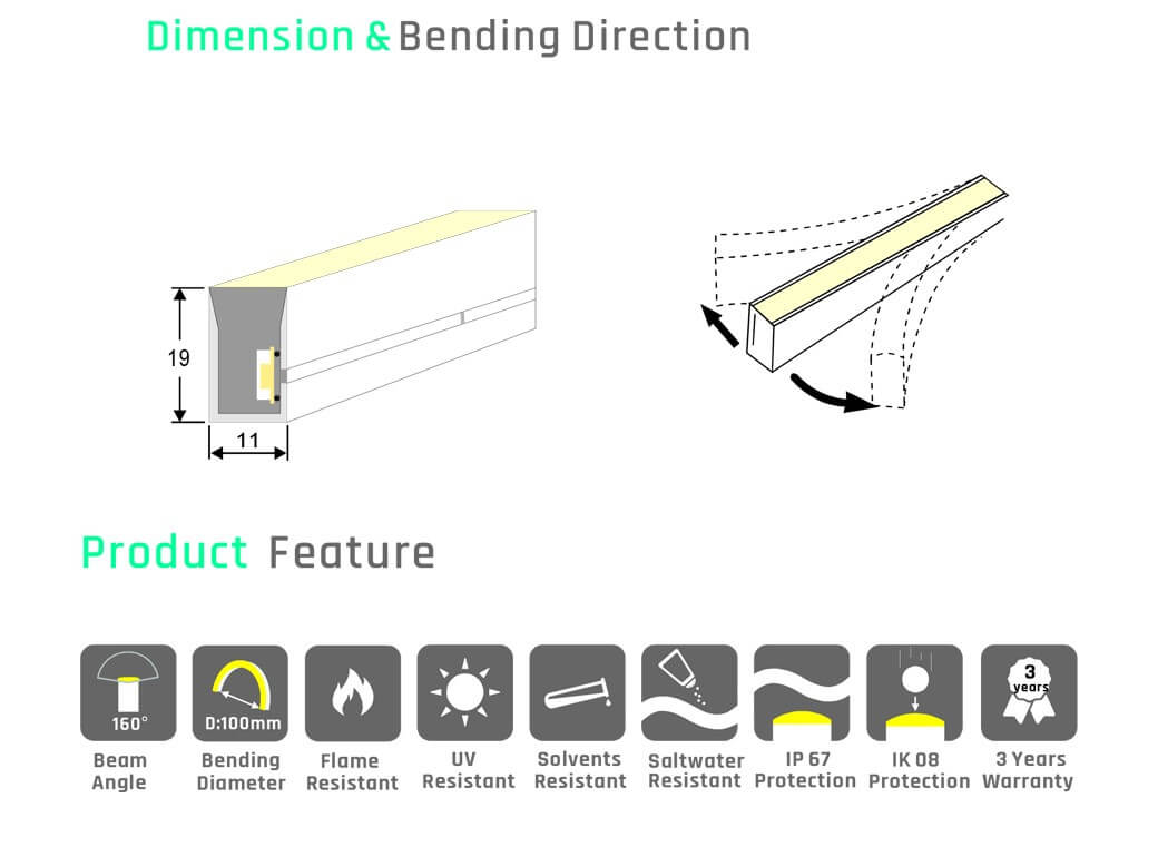 Linear Neon Flex provides a safe, low voltage alternative to traditional neon. Its rectangular profile can be rebated into cabinets or