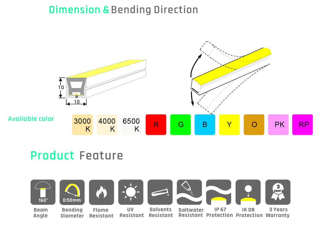 Neon Flex | 10mm x 10mm | Vertical or Bend