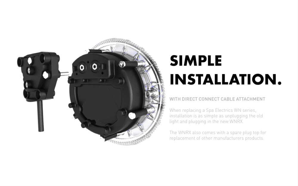 Quantum Series replacement LED swimming pool lights are a direct replacement for the older model spa electrics WN Series halogen under water lights. They can be changed and replaced in minutes with the unique detachable plug on the back of your existing light. The easiest way to transform your swimming pool into a rich, vibrant oasis of coloured light.