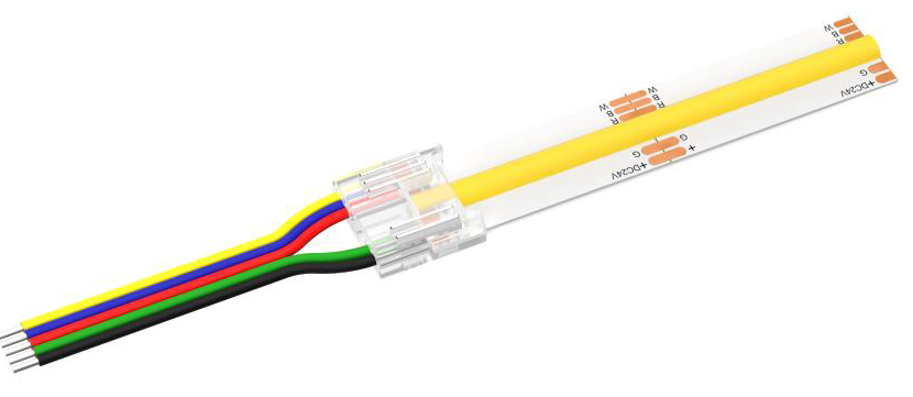 QWIK Start allows solder free connection of 12mm RGBW COB LED Strip lights without the need for any special tools or skills