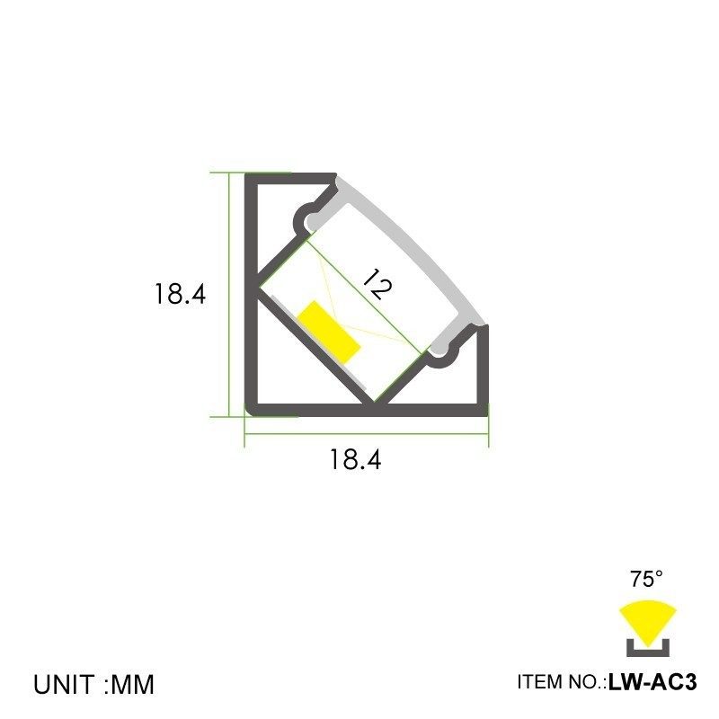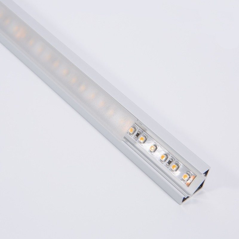 18mm x 18mm corner mounted aluminium profile and diffuser for iFlex Series LED strip lights.