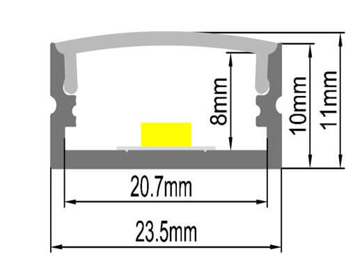 23.5mm x 11mm aluminium profile and diffuser with PMMA acrylic optical lens. Flush mounted installation into rebate channel. suits iFlex ultra and RGB plus series LED Strip light.