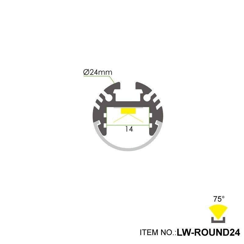 24mm diameter round aluminium profile can be used to hang clothes while providing general illumination from the iFlex LED strip light. Install with sensor switch to turn on when wardrobe doors are opened.