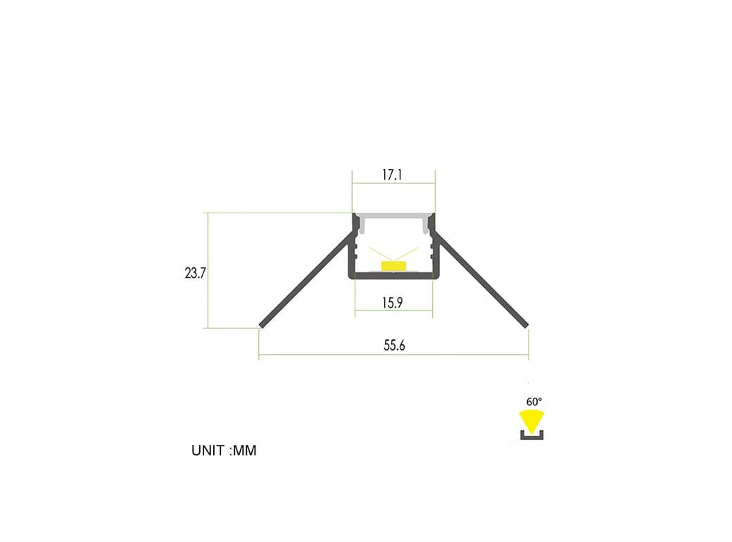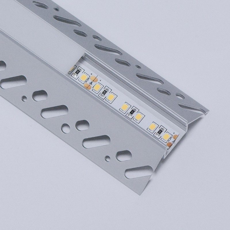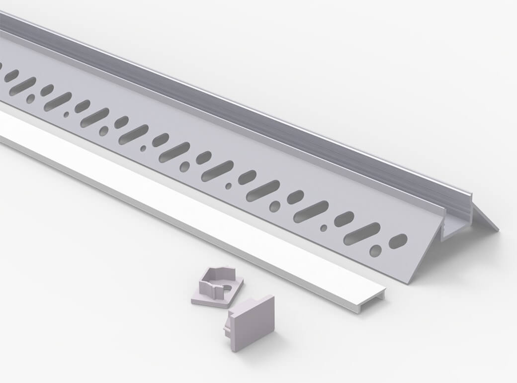 Designed to be plastered in place with 45 deg angle to create a stylish light along an external corner.